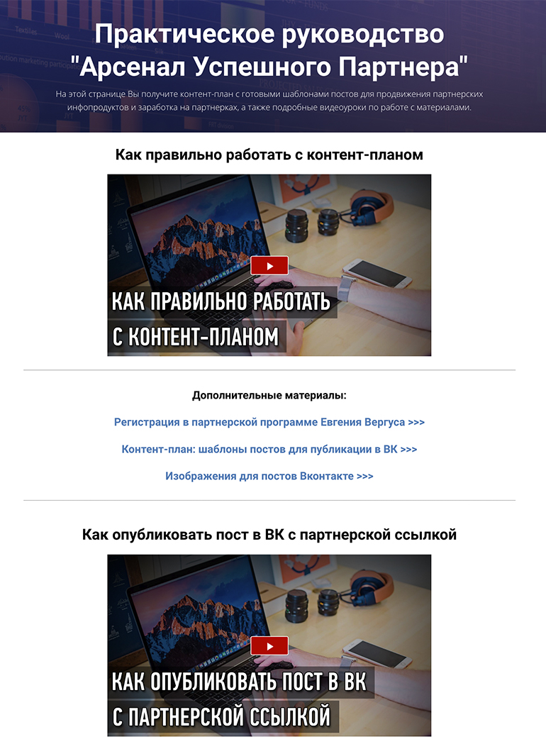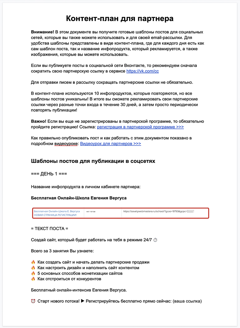 Вы узнаете, как скачать и правильно использовать контент-план, где взять свои партнерские ссылки и скачать изображения.
